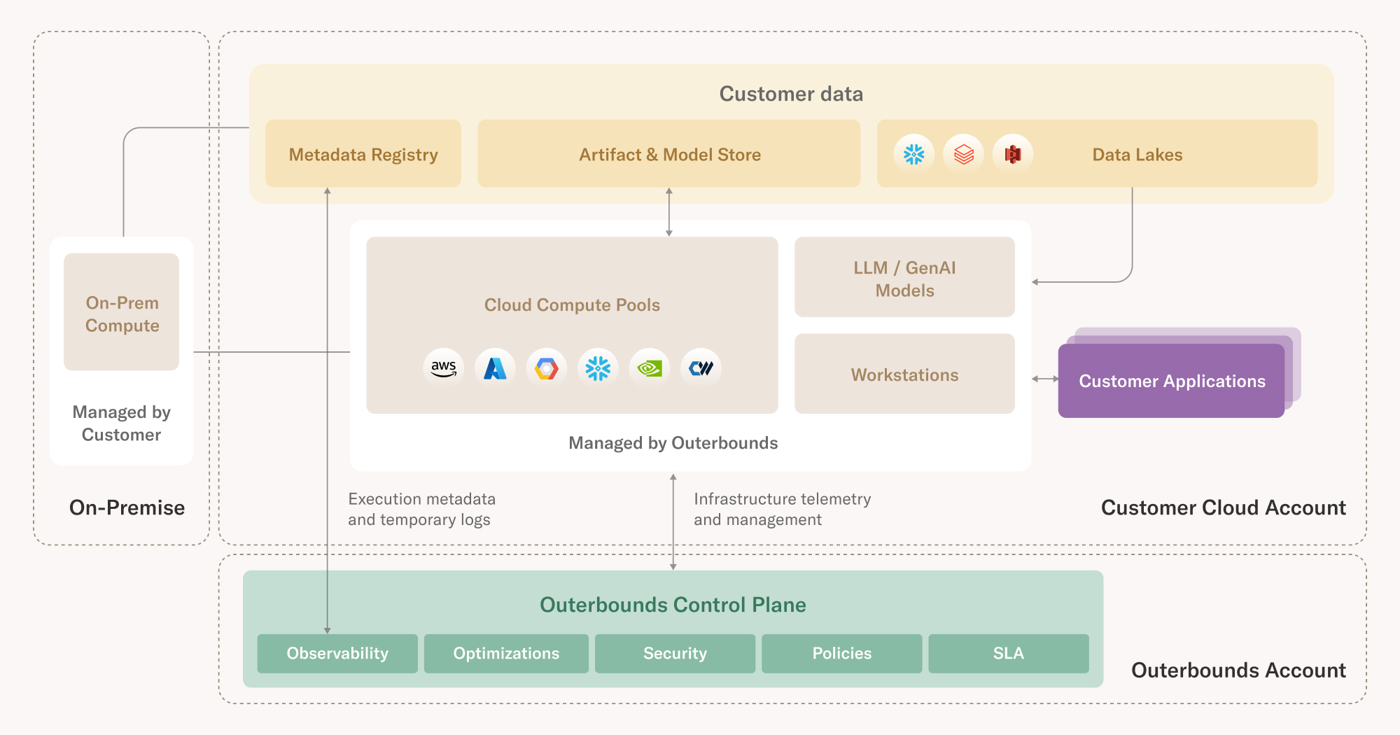 AI-ready platform architecture showing data lakes, model store, compute pools, and control-plane orchestration across industries. (source: Outerbounds)